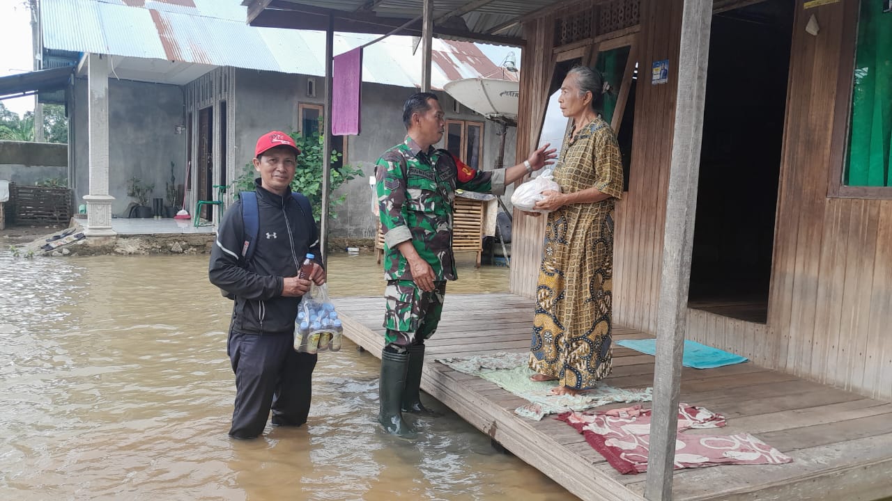 Sedangkan rumah yang terdampak banjir sebanyak 182 KK dan 36 KK terendam air, kondisi Air masih menggenang untuk itu, 5 unit Perahu Fiber. Babinsa bersama Bhabinkamtismas dan relawan masih disiagakan,”imbuhnya