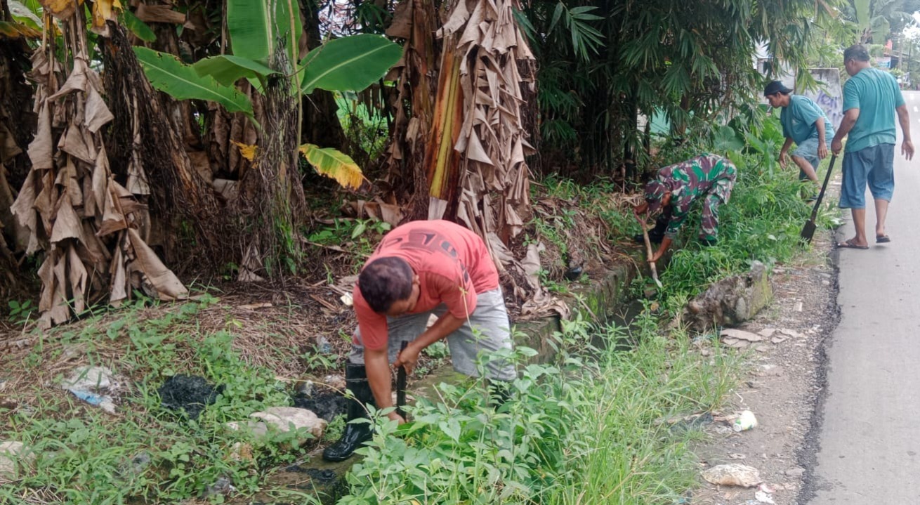 Dimotori oleh Babinsa Mangunang Seberang, Serka Edy Mulyanto, warga masyarakat bersama TNI gotong royong membersihkan parit sepanjang 300 meter di RT. 002 RW.001,