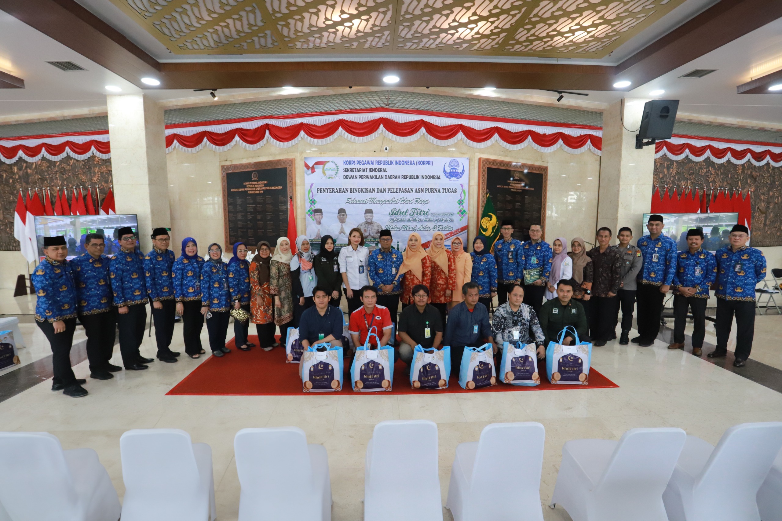 Jakarta,metrotalenta.online–Menyambut Hari Raya Idulfitri 1445 H, Korps Pegawai Republik Indonesia (KORPRI) Sekretariat Jenderal Dewan Perwakilan Daerah (Setjen DPD) RI menyerahkan bingkisan sembako kepada seluruh ASN dan staf pendukung di lingkungan Setjen DPD RI, Senin (1/4/2014). Dalam acara yang digelar di Gedung Setjen DPD RI ini, KORPRI Setjen DPD RI juga memberikan penghargaan kepada ASN Setjen DPD RI yang telah purna tugas.