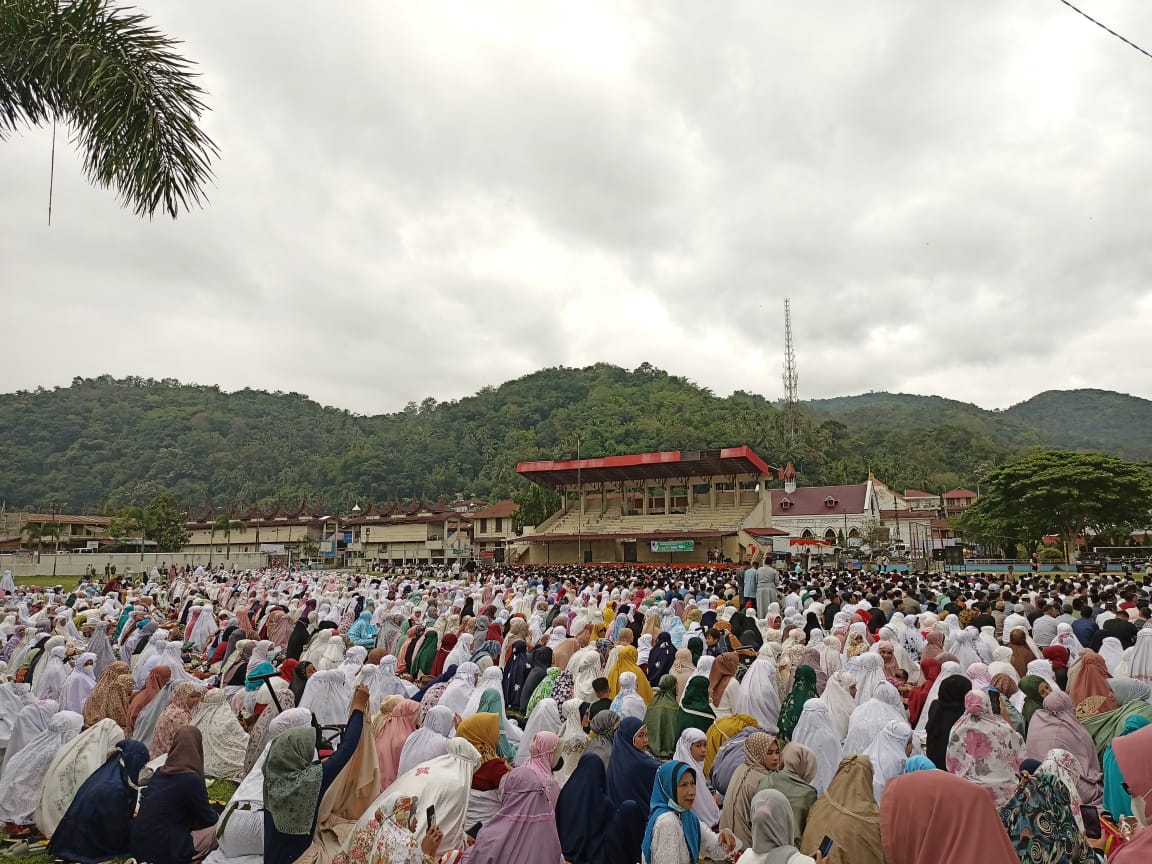 Sawahlunto,Metrotalenta.online–Lapangan Ombilin Sawahlunto dipadati masyarakat yang akan menunaikan ibadah Shalat berjamaah dalam menyambut Idul Fitri 1 Syawal 1443 Hijriah.