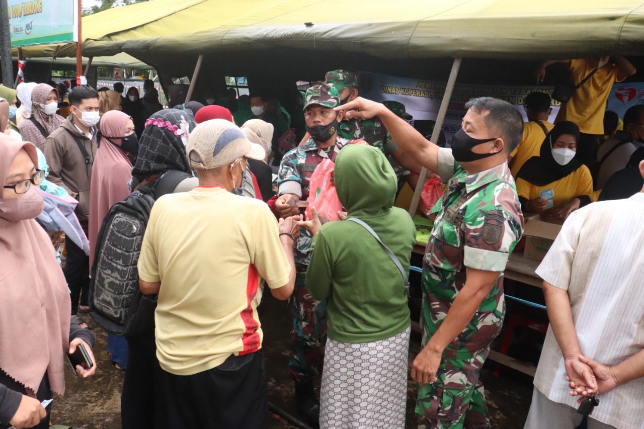 Tabalong,Metrotalenta.online–Pasar murah dan gebyar vaksinasi Covid-19 dilaksanakan Kodim 1008/Tabalong bekerjasama dengan Dinas Koperasi UKM Perindustrian dan Perdagangan Tabalong, Selasa (21/3/2022).