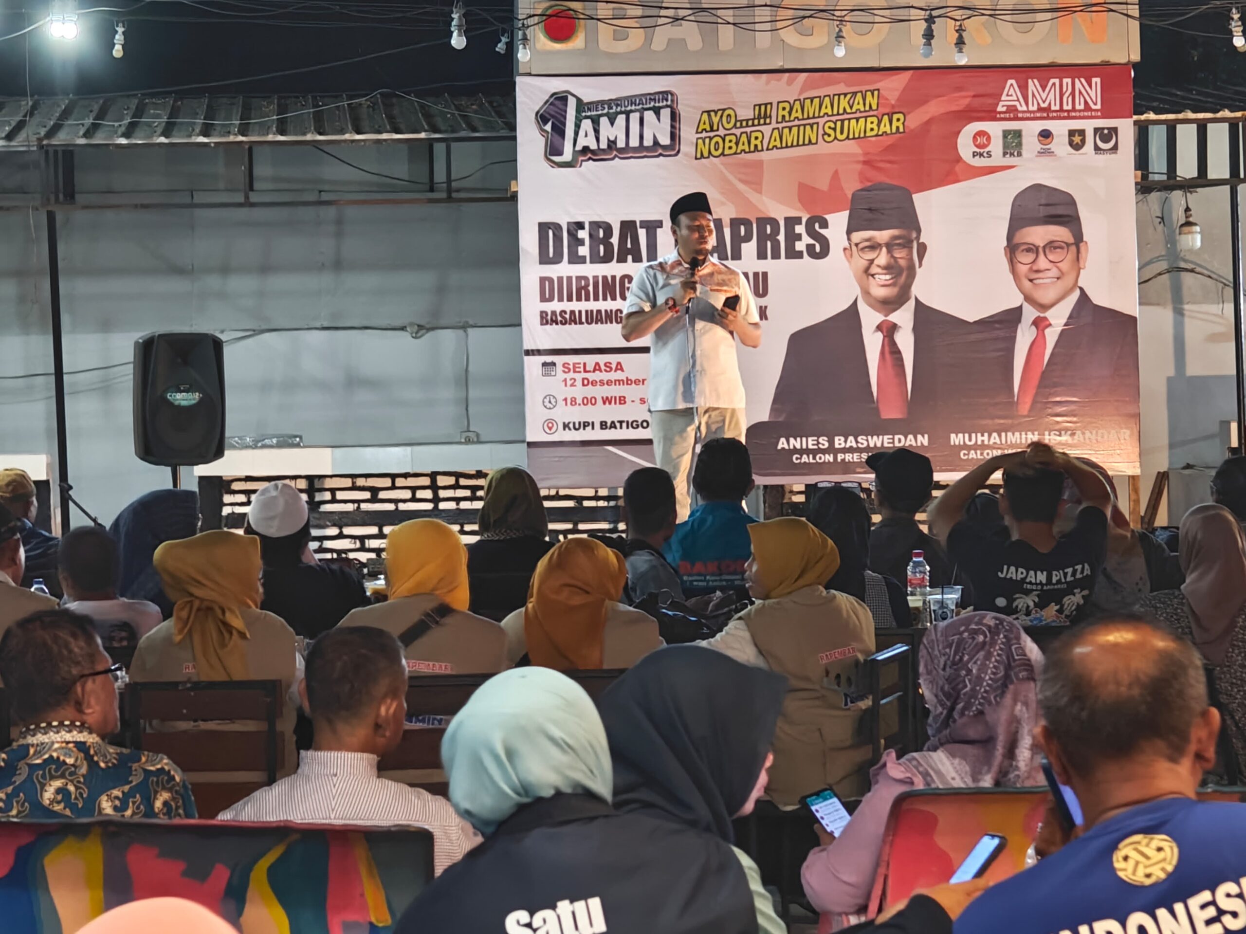 Nobar dihadiri oleh seluruh Parpol Koalisi dan seluruh relawan AMIN dari berbagai elemen dan profesi di Sumatra Barat.