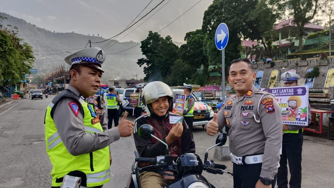 Pagi hari, Satlantas Polres Sawahlunto Berikan Voucher Minuman Gratis