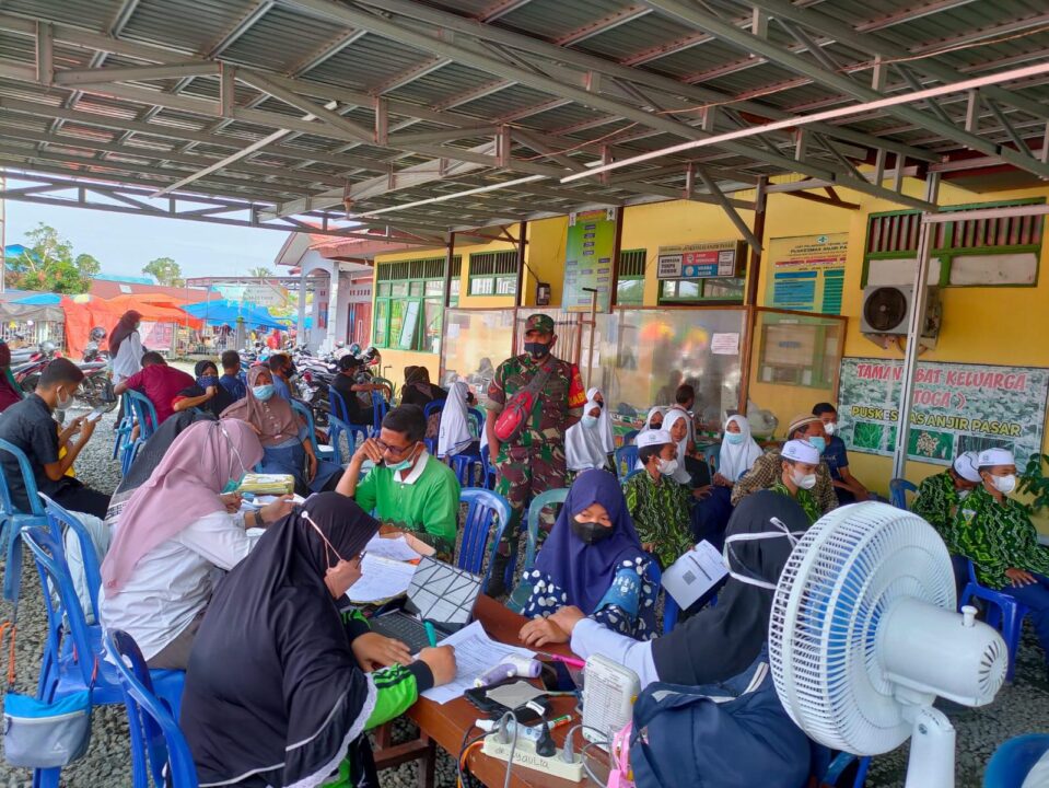 Barito Kuala,Metrotalenta.online–Pastikan Dapat Berjalan Lancar Anggota Babinsa Koramil 1005-09/Anjir Pasar Serka Jenggu Sindriadi Kegiatan Vaksin di Wilayah,Sukseskan program Vaksinasi di masa Pandemi Covid 19, Babinsa terus mengawal pelaksanaan Vaksinasi di wilayah binaan. Seperti di lakukan personil Babinsa Koramil Anjir Pasar yang turut mendampingi pelaksanaan Vaksinasi di di Ds. Anjir Pasar Lama.Kamis(27/01/2022).