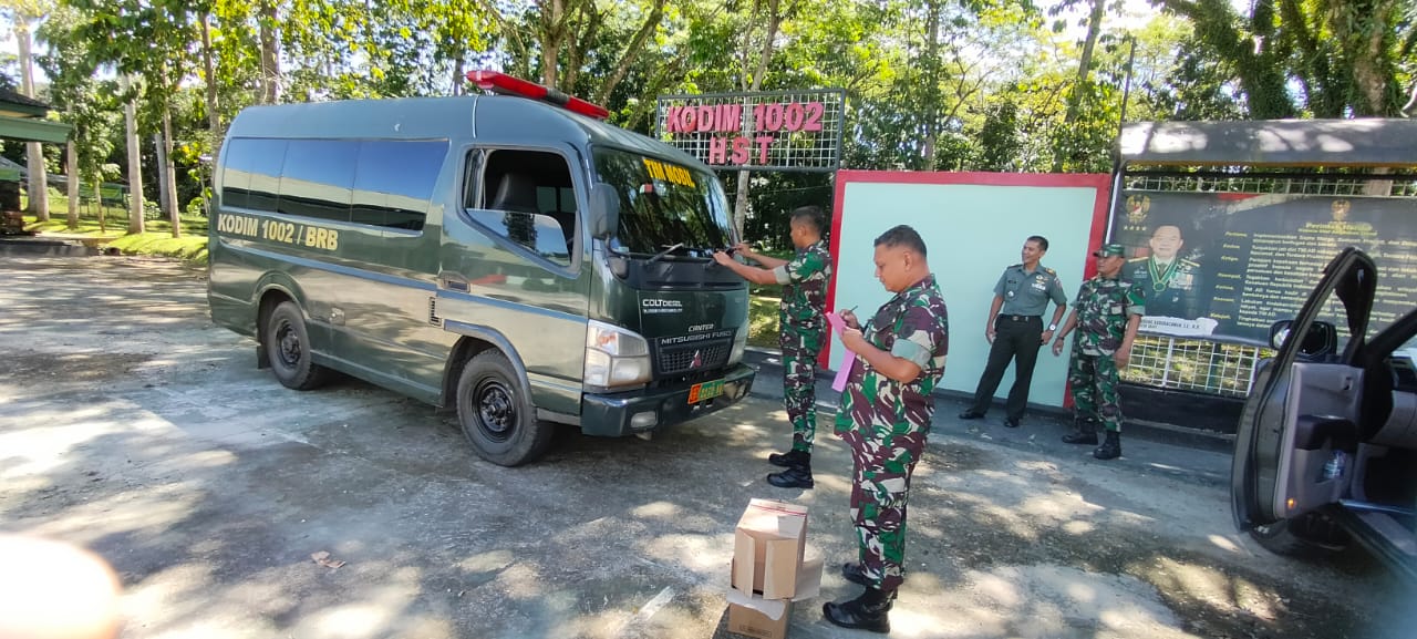 Dalam rangka memastikan kelayakan kendaraan, Tim Pemeliharaan Peralatan Banjarmasin melaksanakan Pemeriksaan kendaraan Kodim 1002/HST.Rabu (18/5) sore