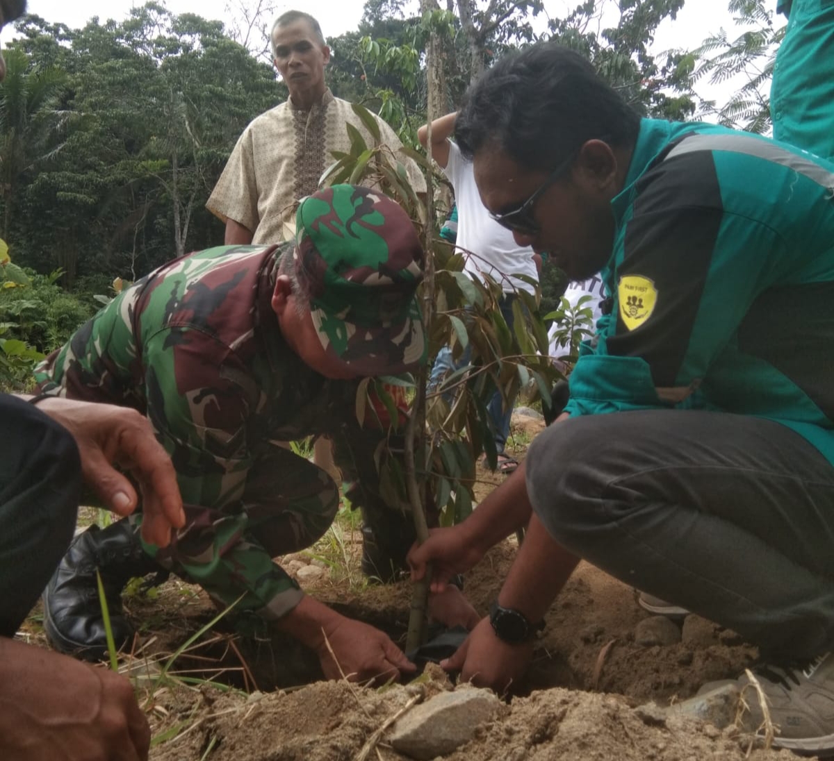 Sebanyak 200 pohon terdiri dari 150 Batang Bibit Durian dan 50 Batang Bibit Rambutan kita tanam bersama Babinsa dan warga masyarakat desa Patikalain,”tambahnya