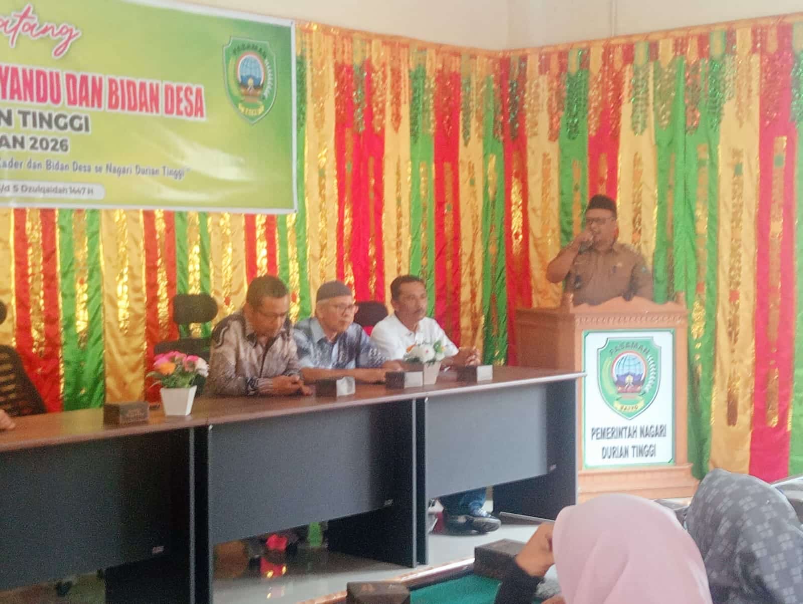 Pasaman,metrotalenta.online—- Pemerintah Nagari Durian Tinggi menggelar Pelatihan Kader Posyandu dan Bidan Desa Tahun Anggaran 2026 sebagai upaya meningkatkan kapasitas sumber daya manusia dalam mendukung pelayanan kesehatan dasar di tingkat nagari di Gedung Pertemuan Anak Nagari, Selasa (21/04/2026)
