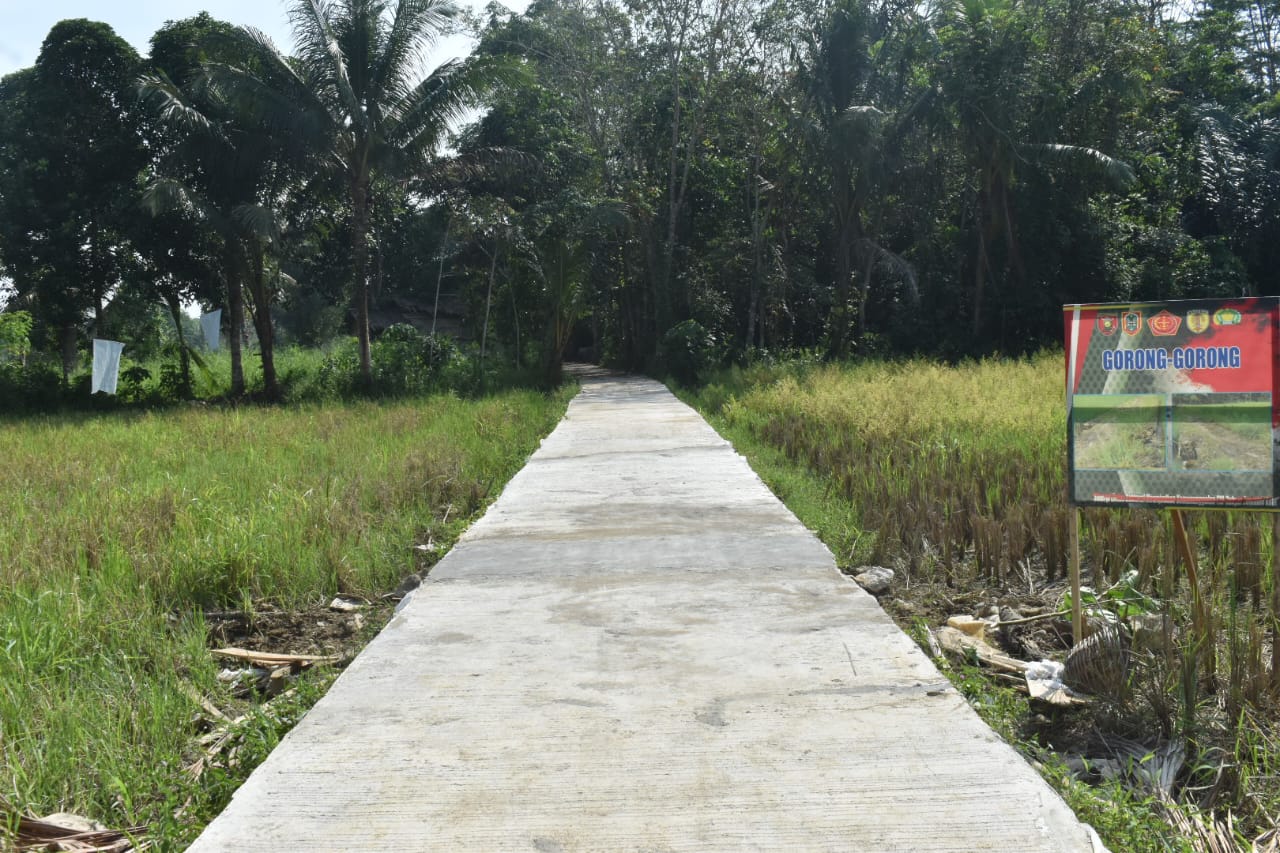 Dijelaskan oleh Lettu Inf Sutanto bahwa di dalam sasan utama jalan sepanjang 2,382 meter yang menghubungkan dua desa di dua kecamatan ini, terdapat pasangan dua titik gorong-gorong dan dua titik Slop beton,”ujarnya