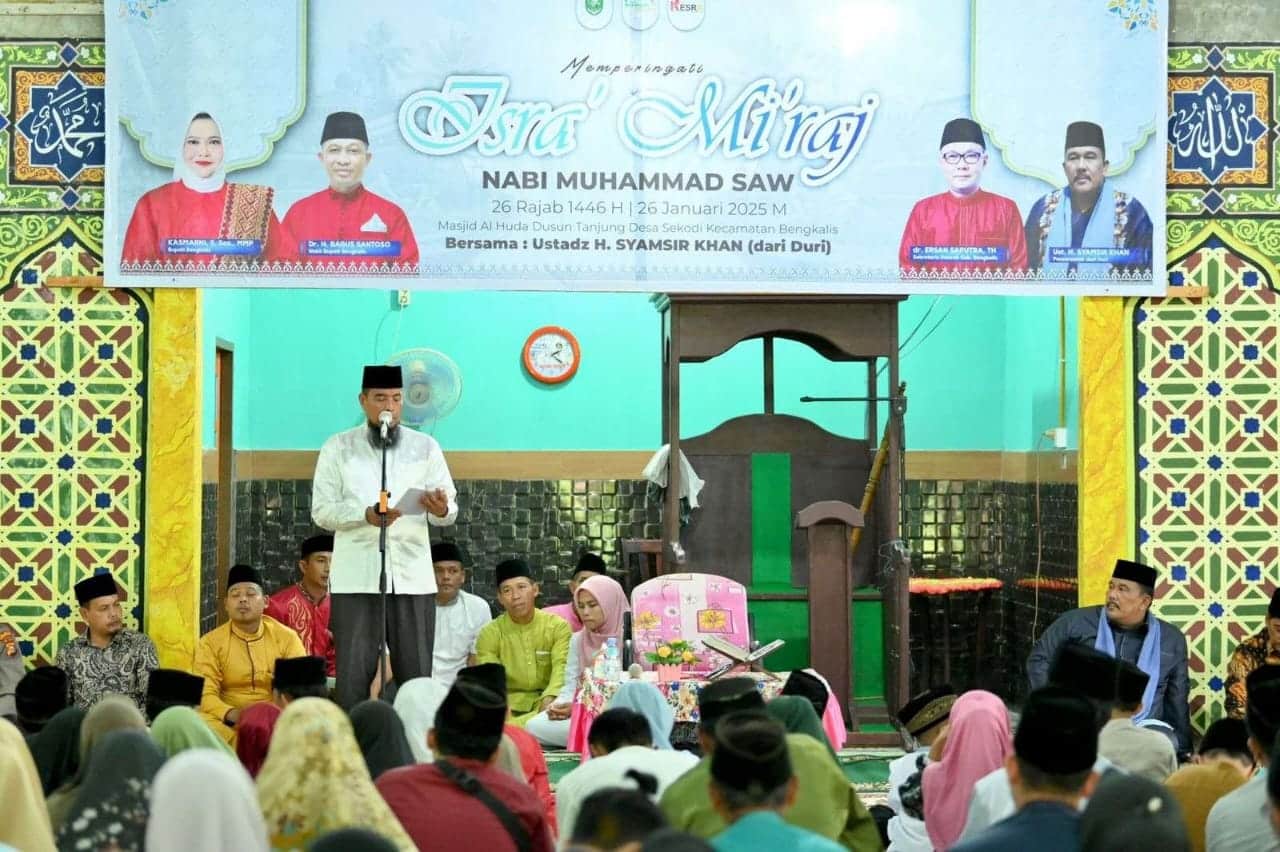 Bengkalis,Metrotalenta.online.-Pemerintah Kabupaten Bengkalis memperingati Isra Mi’raj Nabi Muhammad SAW tahun 1446H/2025M di Masjid Al-Huda Desa Sekodi pada Minggu, 26 Januari 2025. Acara ini dihadiri oleh pejabat pemerintah kabupaten, tokoh masyarakat, dan ribuan jemaah dari berbagai desa di Kabupaten Bengkalis.