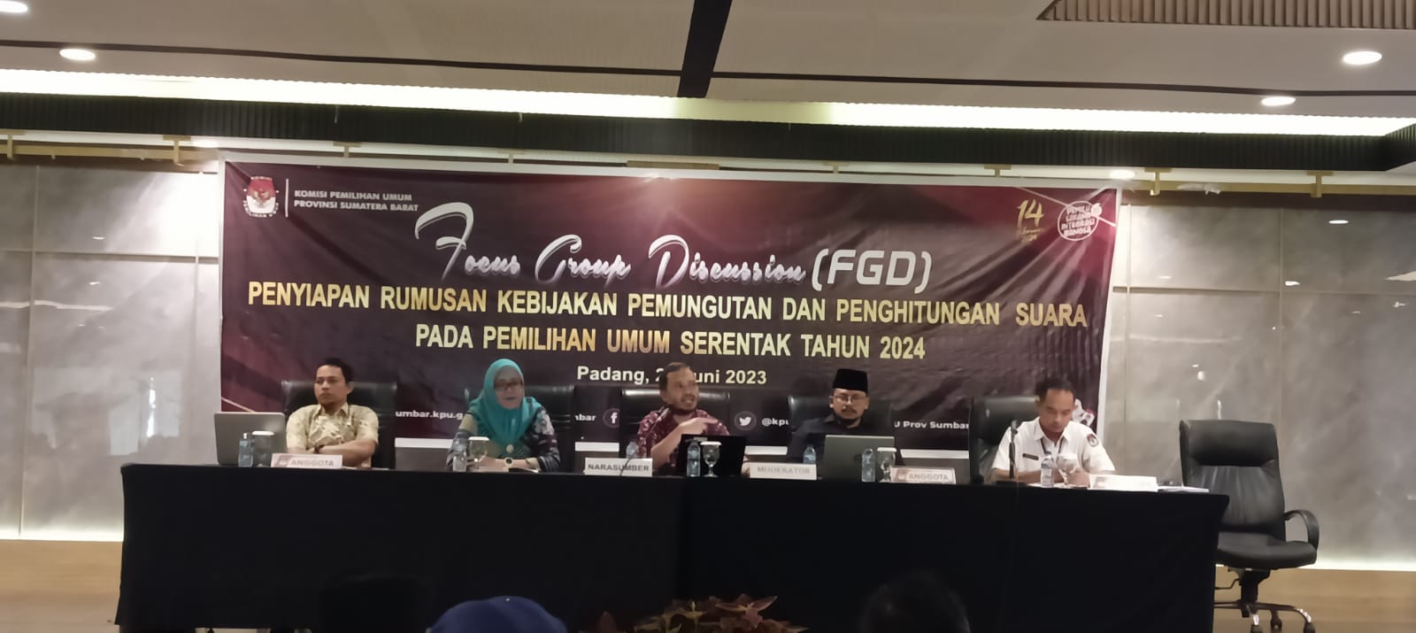Padang,metrotalenta.online–Pemilu Serentak Ditetapkan Pada 14 Februari 2024,Pemungutan Suara Pemilihan Umum (Pemilu) serentak 2024, ditetapkan pada 14 Februari. Untuk penyempurnaan kebijakan pemungutan dan penghitungan suara, maka Komisi Pemilihan Umum (KPU) Provinsi Sumatera Barat menggelar Focus Group Discussion (FGD).
