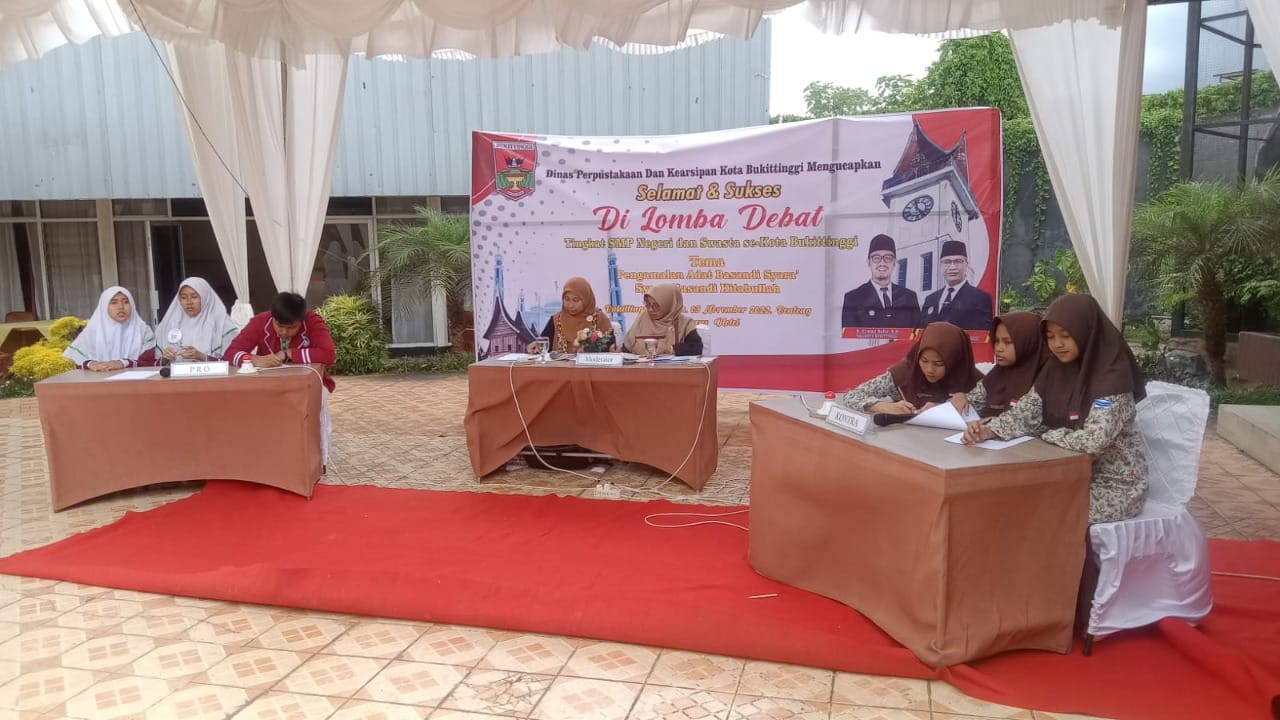BUKITTINGGI. Metro Talenta online — Yang dilangsungkan di Hotel Dimens pada Kamis 3/11/2022 Pemko Bukittinggi melalui Dinas Perpustakaan dan Kearsipan, menyelenggarakan kegiatan lomba Debat Budaya Tingkat SMP Se-Kota Bukittinggi.