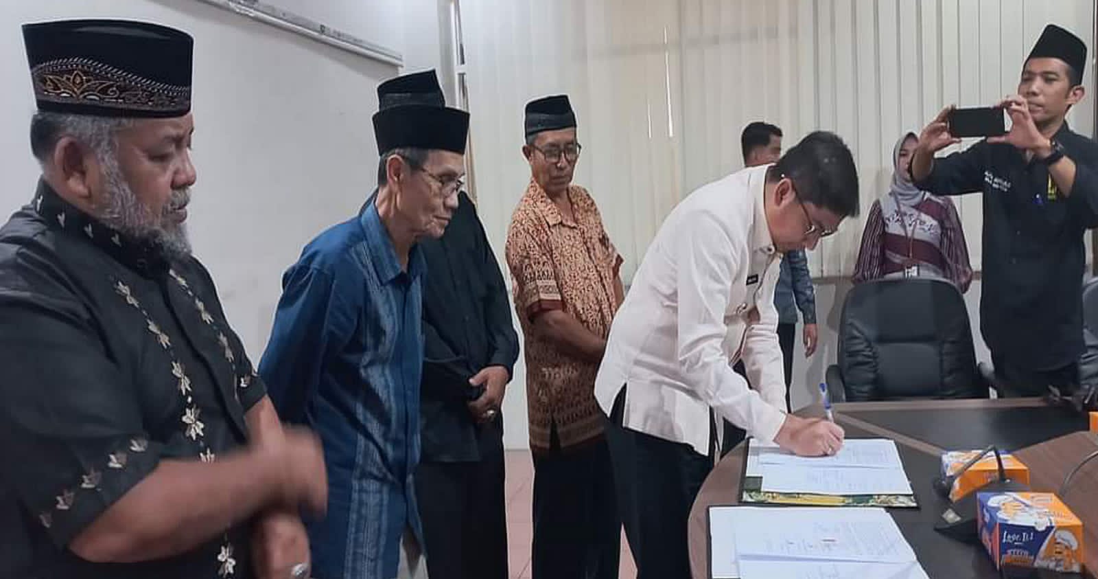 Wali Kota Sawahlunto Deri Asta menandatangani surat pernyataan itu bersama Ketua KAN Kubang Afrizal Suki Lenggang Sati, dan perwakilan niniak mamak dari enam suku di Kenagarian Kubang.