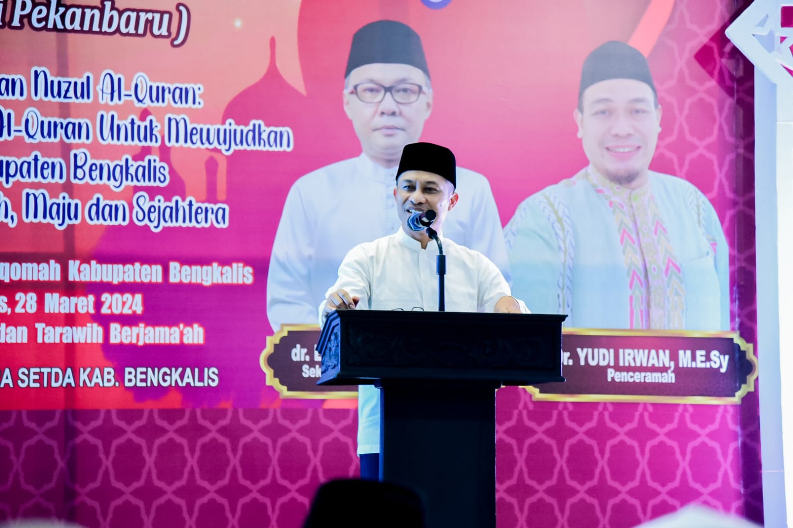 Pada malam Nuzul Qur’an ini menghadirkan penceramah dari Pekanbaru Dr. Yudi Irwan, dengan tema meraih rahmat Al-Qur’an untuk mewujudkan Kabupaten Bengkalis Bermarwah Maju dan Sejahtera. #Mamad.