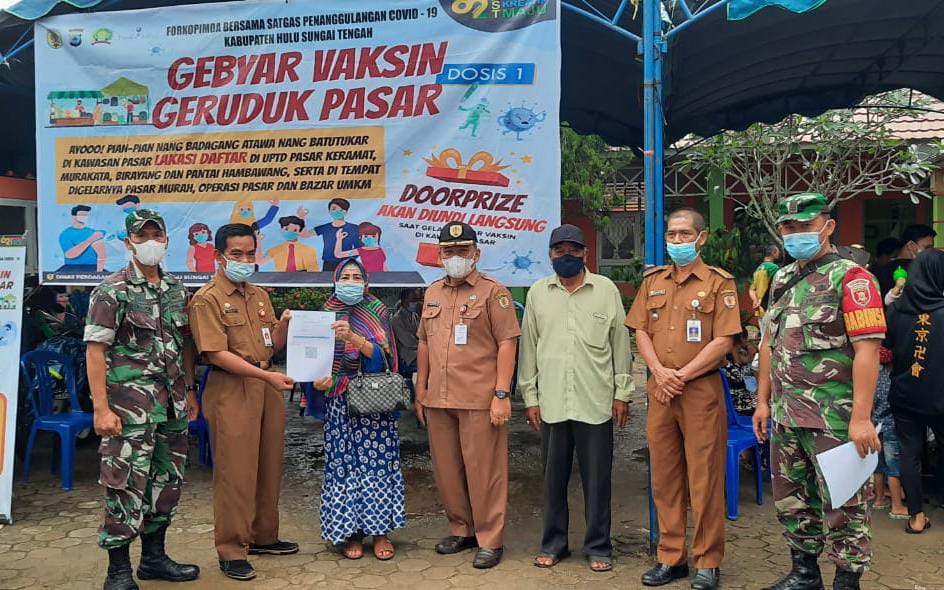 Barabai,Metrotalenta.online–Pilar Batang Alai Selatan bersinergi menggelar serbuan vaksinasi untuk masyarakat.Kali ini Danramil, Camat Dan Kapolsek Batang Alai Selatan melalukan sosialisasi kepada pengunjung pasar Birayang untuk mengikuti yang diselenggarakan oleh Pemerintah Daerah Kab.Hulu Sungai Tengah.Senin (20/12).