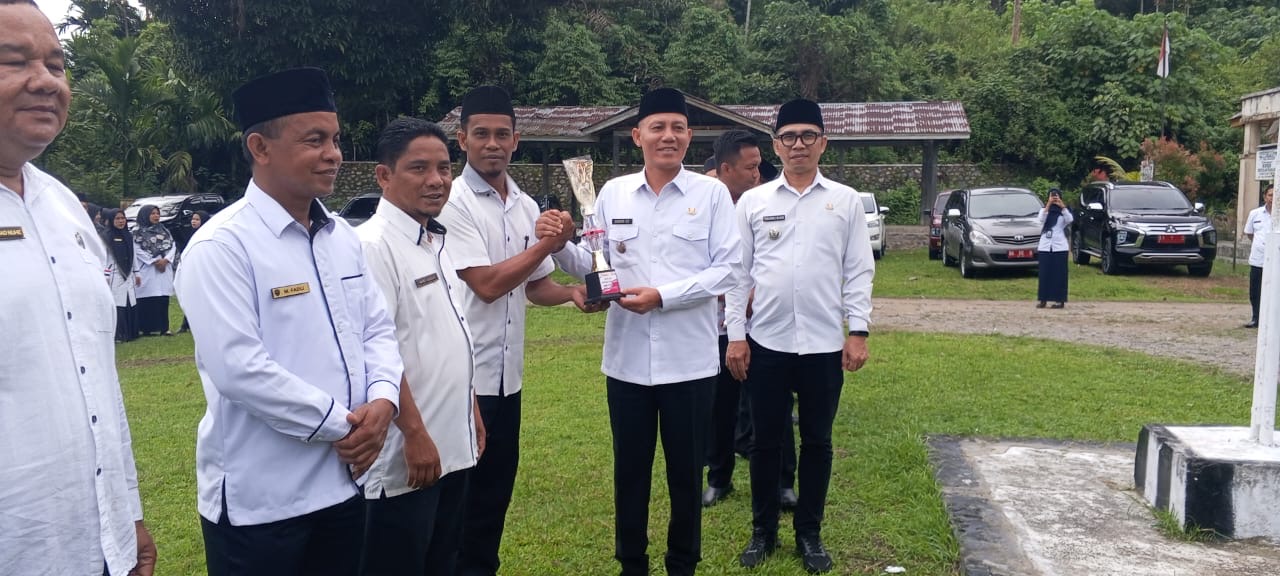 Pada kesempatan tersebut juga diserahkan hadiah dan piala pada kegiatan lomba dalam rangka peringatan hari kemerdekan RI ke 79 oleh Bupati Pasaman Sabar AS , ( jt) ,