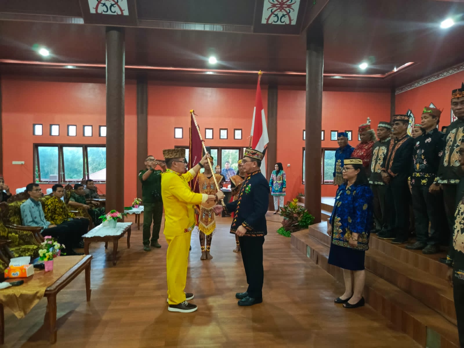“Ketua DORD kabupaten pulang pisau,komandan kodim 1011/klk kuala kapuas,kapolres pulang pisau,kepala kejaksaan negeri dan ketua pengadilan negeri ,ketua pengadilan agama kabupaten pulang pisau,para staf ahli,asisten, dan para kepala dinas/ badan/ dan camat di lingkup pemerintah kabupaten pulang pisau;para tokoh agama, tokoh adat dan damang,tokoh masyarakat,ormas adat, serta rekan-rekan pers.para pengurus DAD kabupaten pulang pisau yang lama periode 2018-2023.rekan kami para pengurus dewan adat dayak kabupaten pulang pisau baru terpilih masa bhakti 2023-2028.