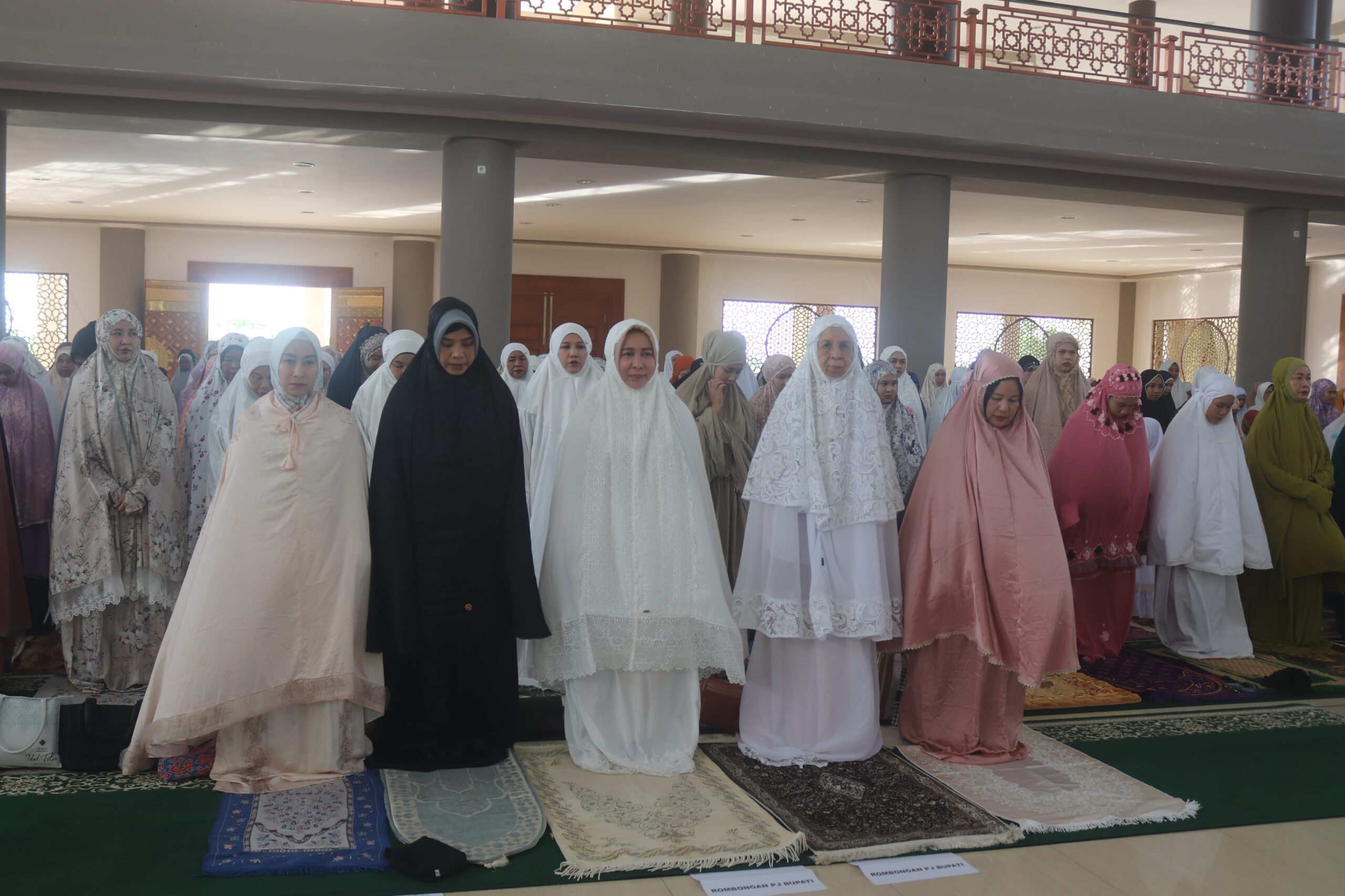 “Pada pagi hari ini seluruh kaum muslimin bersama-sama mengumandangkan takbir, tahlil,dan tahmid,untuk mengagungkan kebesaran allah swt,yang telah membawa kita sampai pada puncak kemenangan dan kebahagiaan, di hari raya idul fitri 1445 hijriyah/2024 masehi.ujar Hj,Nunu Andriani