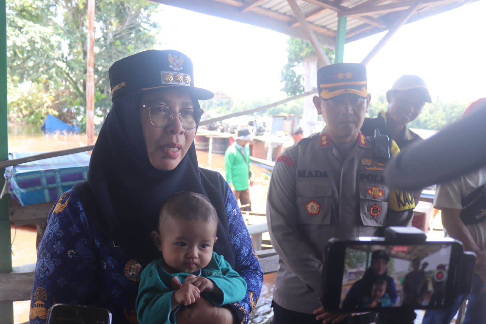 Pulang pisau,metrotalenta.online–pj,bupati pulang pisau,Nunu Andriani,bersama sekda dan kapolres pulang pisau,mengunjugi adanya banjir di desa tumbang Nusa,kecamatan jabiren raya,kabupatin pulang pisau,kalaimantan tengah,18/03/2024)