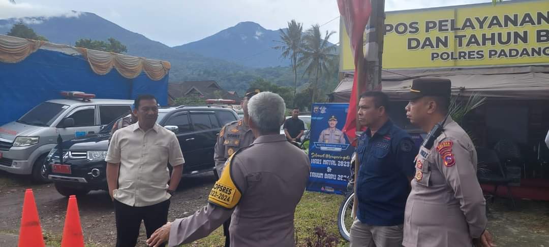 PADANG PANJANG, — Penjabat (Pj) Wali Kota, Sonny Budaya Putra, A.P, M.Si tinjau Pos Pelayanan Natal 2023 dan Tahun Baru 2024 (Nataru) Polres Padang Panjang serta Posko Kesehatan Kesiapsiagaan Nataru yang berada di Kelurahan Silaing Bawah, Kecamatan Padang Panjang Barat, Selasa (26/12).