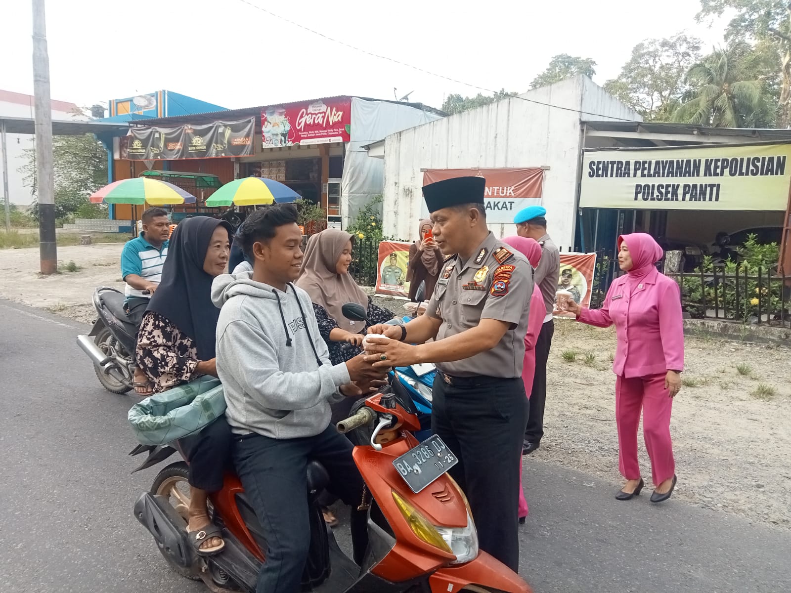 Kegiatan sosial tersebut dipimpin langsung oleh Kapolsek Panti, AKP Metriza Hendri, yang bersama anggota dan Bhayangkari dengan penuh kehangatan menyapa para pengendara roda dua maupun roda empat.