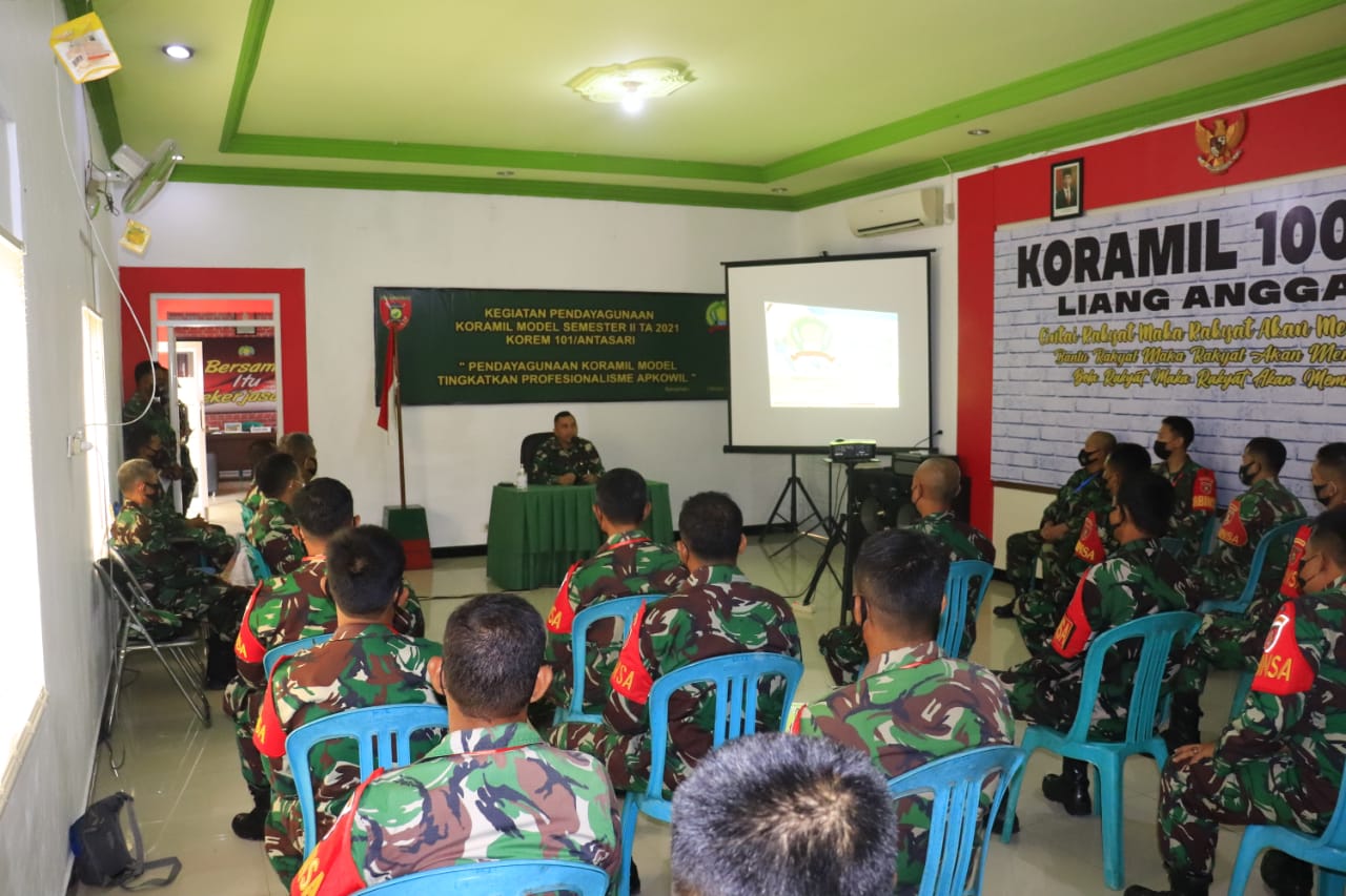 Martapura,Metrotalenta.online–Prajurit Babinsa Dibekali Ilmu Teritorial Melalui Pemberdayagunaan Koramil ModelSenin ( 8/11) Pemberdayaan Koramil Model Lingkup TNI -AD difokuskan pada peningkatan sumber daya manusia (SDM) aparat Komando Kewilayahan yang bertugas sebagai Babinsa dan personel baru yang akan bertugas di kodim.
