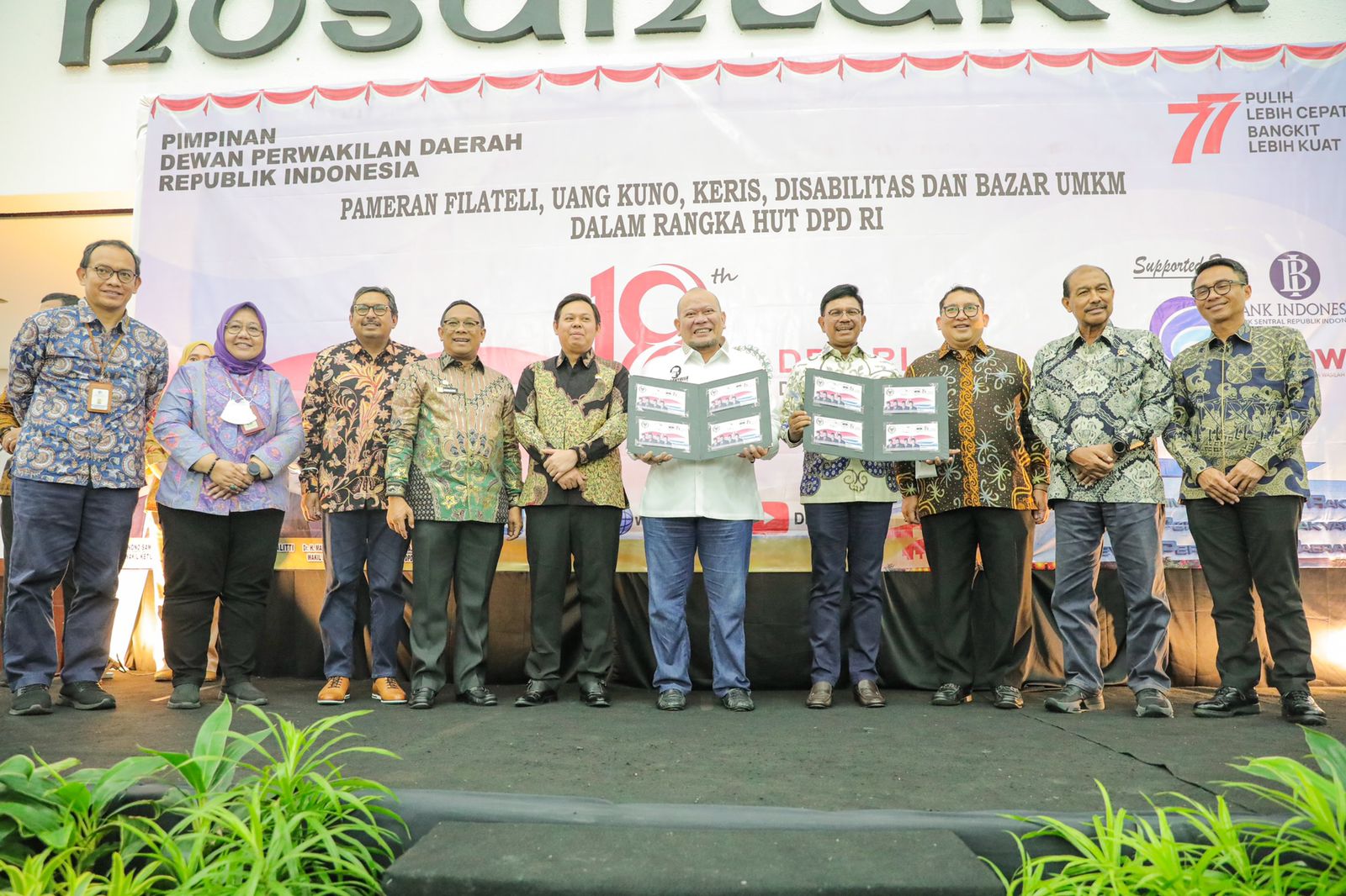 “Bersama kita hadir dari kalangan UMKM, Filateli, Museum Bank Indonesia, pameran keris, uang kuno dan kegiatan lain sebagai rangkaian dan hasil kerjasama dan kolaborasi dengan berbagai pihak sebagai rangkaian puncak perayaan HUT DPD RI Ke-18,” tutur Rahman Hadi.