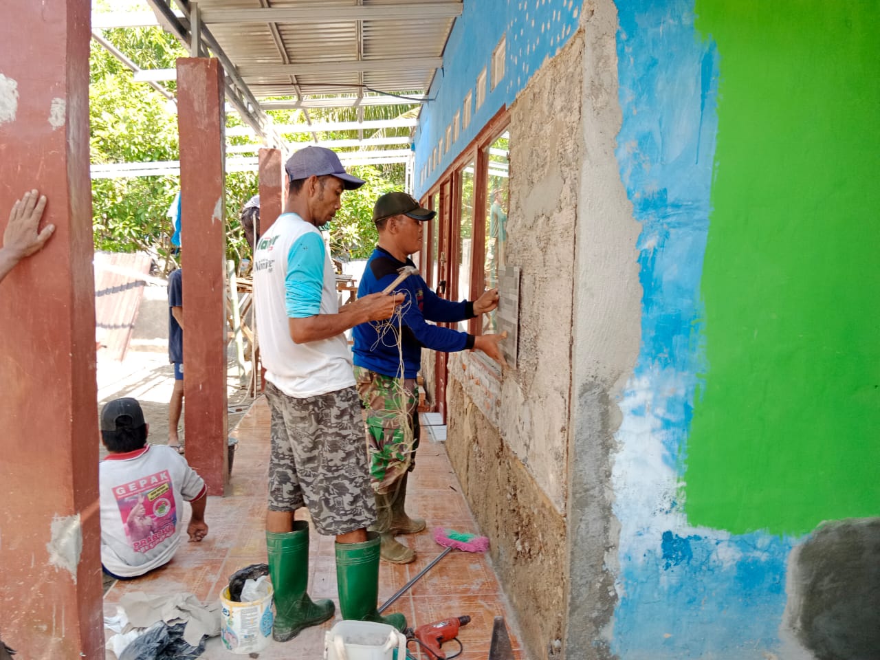 Barabai,Metrotalenta.online–Proses rehab Musholla Darul Khair di desa Mangunang terus digenjot oleh Satgas TMMD bersama warga masyarakat.