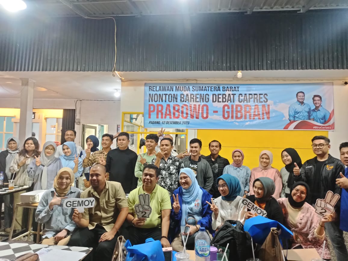 ” Hari ini terasa sekali semangat anak muda para pendukung Prabowo-Gibran saat menyaksikan Debat Capres pertama, mereka sangat serius mengamati jalannya Debat. Debat ini salah satu bagian untuk menarik minat pemilih Pemula memenangkan Pemilu 2024 mendatang.” ujar Imelda Sari yang saat ini juga menjadi caleg DPR RI dapil Sumbar 1.
