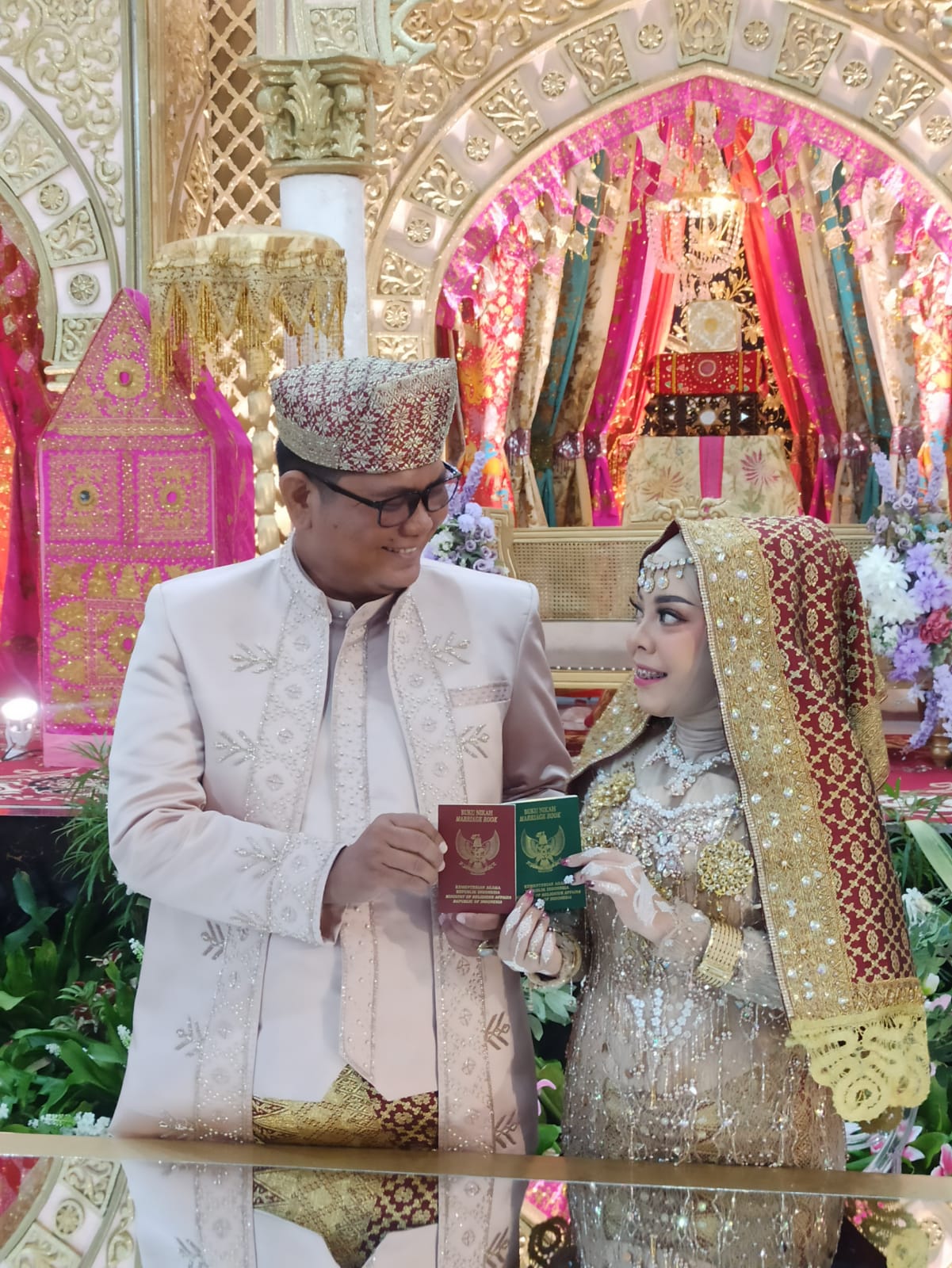 Pasangan yang mengikat janji suci pernikahan ini membuat mata publik terbelalak karena mahar pernikahan mereka jumlahnya fantastis dalam bentuk uang dolar Amerika Serikat atau USD. Tidak tangung-tanggung, selain seperangkat alat sholat mahar pernikahannya sebesar USD 400 Dollar Amerika.