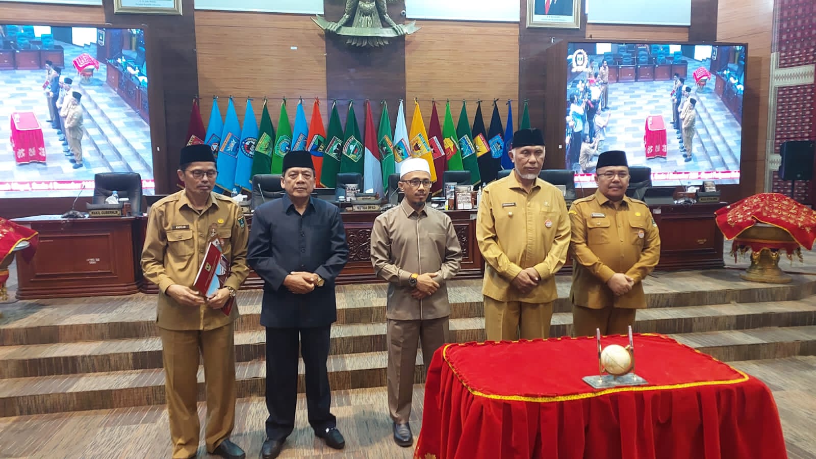 Rapat paripurna tersebut dipimpin Wakil Ketua DPRD Sumbar Irsyad Syafar didampingi wakil Ketua Suwirpen Suib dan dihadiri Gubernur Sumbar Mahyeldi Ansyarullah didampingi Sekda Hansastri.