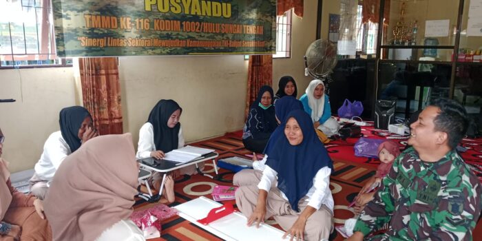 Barabai,Metrotalenta.online–Satgas TMMD ke-116 Kodim 1002/HST melaksanakan kegiatan penyuluhan Posyandu di Kantor desa Hapulang kecamatan Haruyan Kabupaten Hulu Sungai Tengah.(06/6/2023).