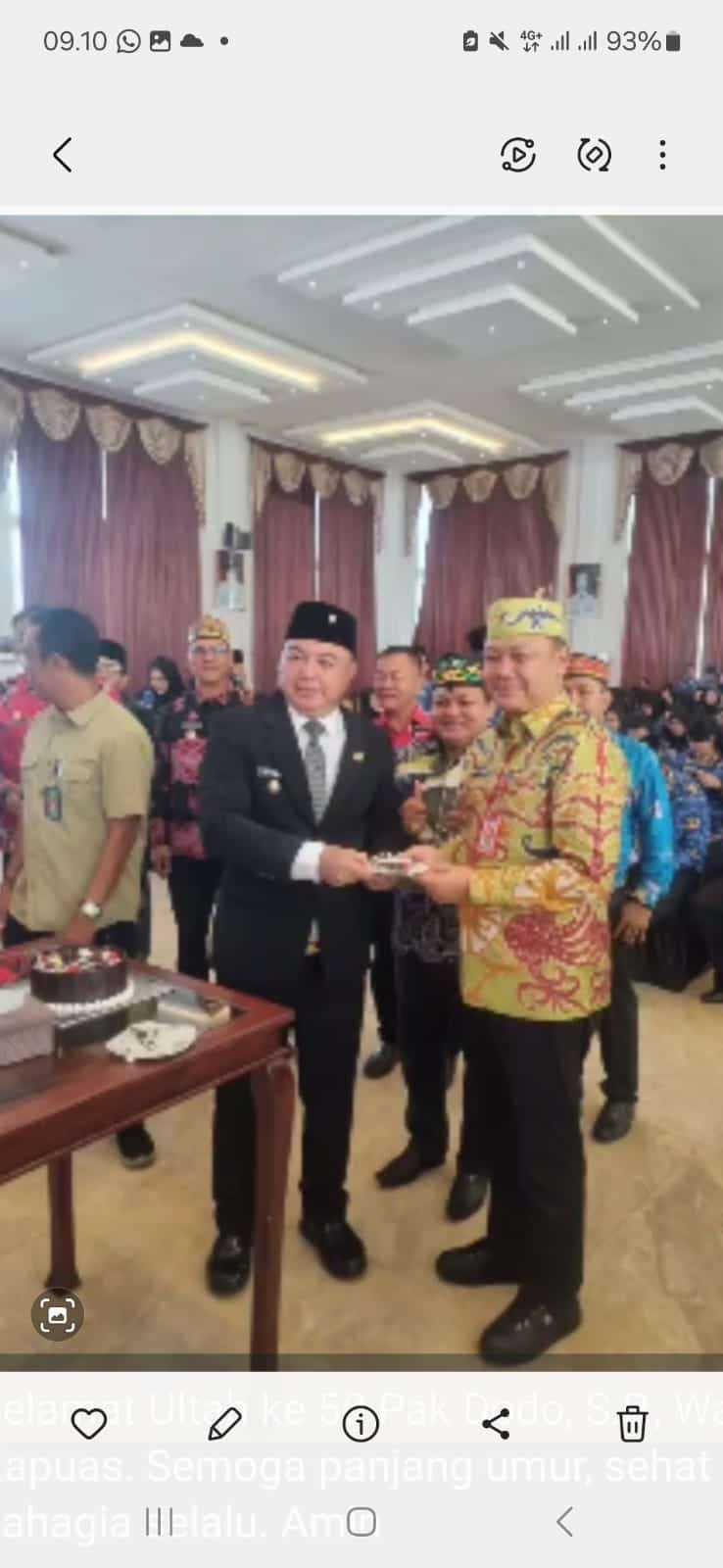 “Atas nama pribadi dan selaku Sekretaris Daerah Kabupaten Kapuas,Kalimantan.tengah saya mengucapkan selamat ulang tahun yang ke-50 kepada Bapak Wakil Bupati Dodo S.P.,” ujar Usis I. Sangkai 16/10/2025).