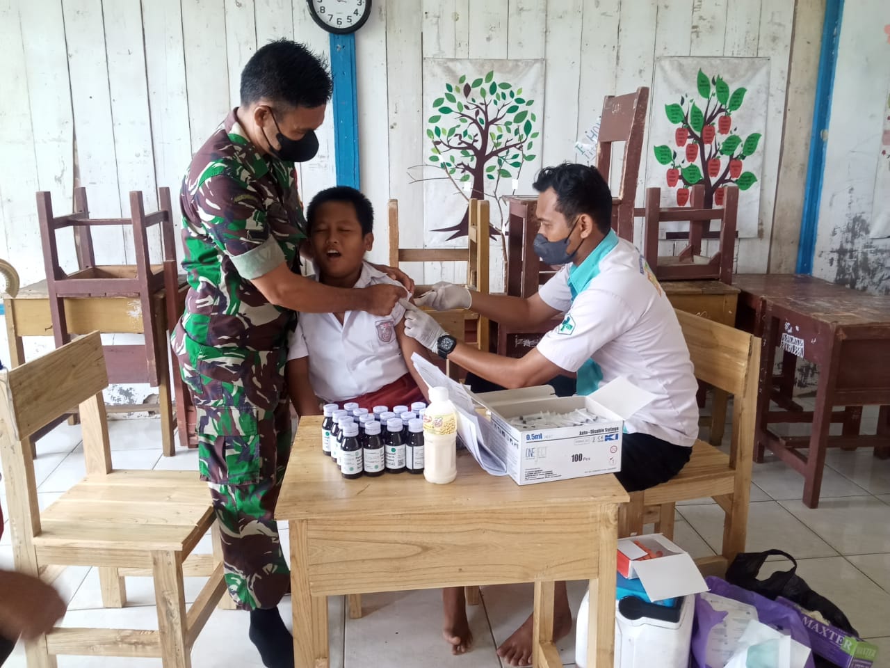 Barito Kuala,Metrotalenta.online–Dengan semangat yang menggebu gebu Babinsa dan untuk meningkatkan daya tahan tubuh warga masyarakat dan Adik-adik Siswa/Siswi dari virus covid 19 khususnya di desa Temuwulan di laksanakan vaksinasi yang di Di SDN pemurus 3 Desa Tab.pemurus kec.Tabunganen kab.Batola.Rabu(16/03/2022)