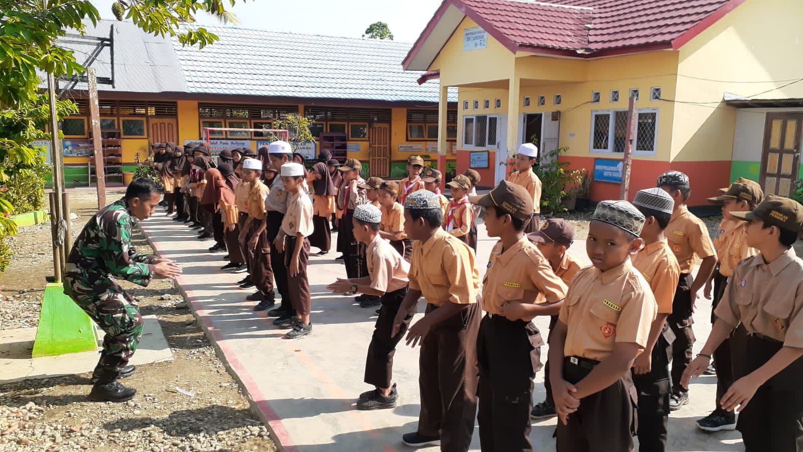 Dalam kesempatan tersebut, Serda Agus Arahman selain memberikan motivasi dengan permainan dan yel-yel, ia juga memberikan materi PBB guna meningkatkan disiplin para siswa.