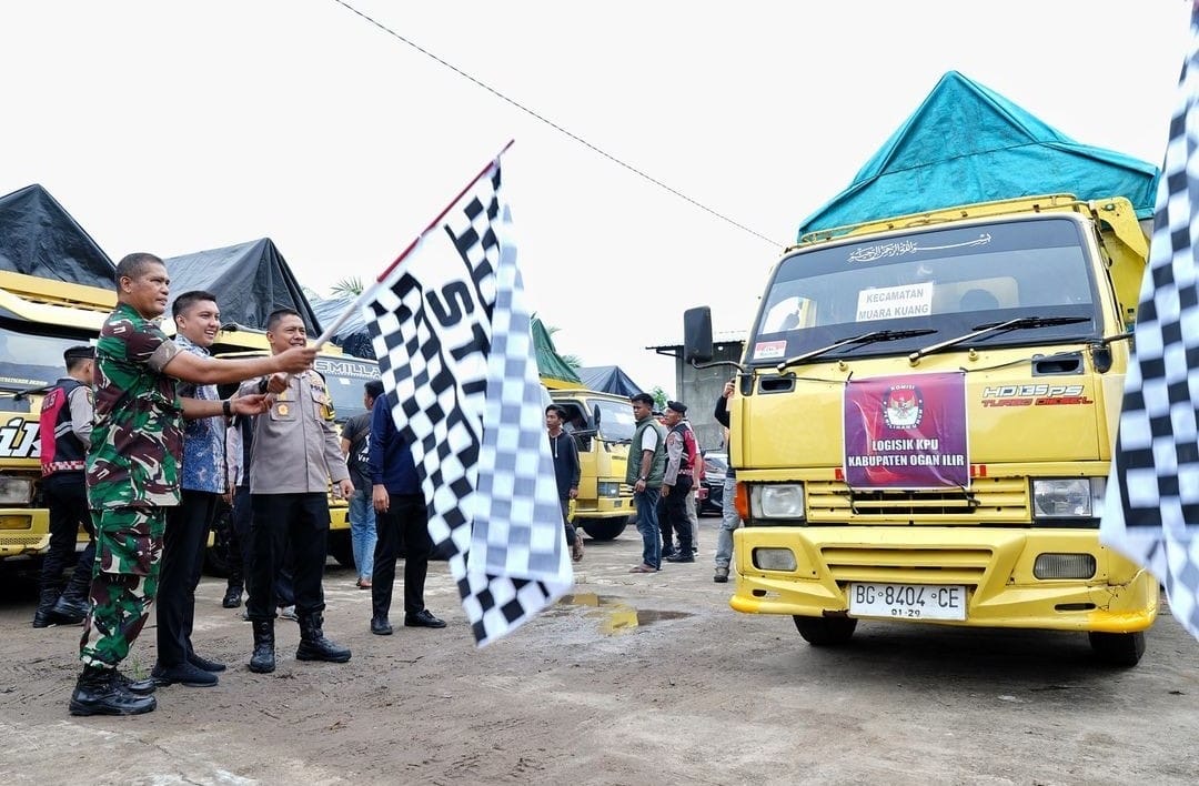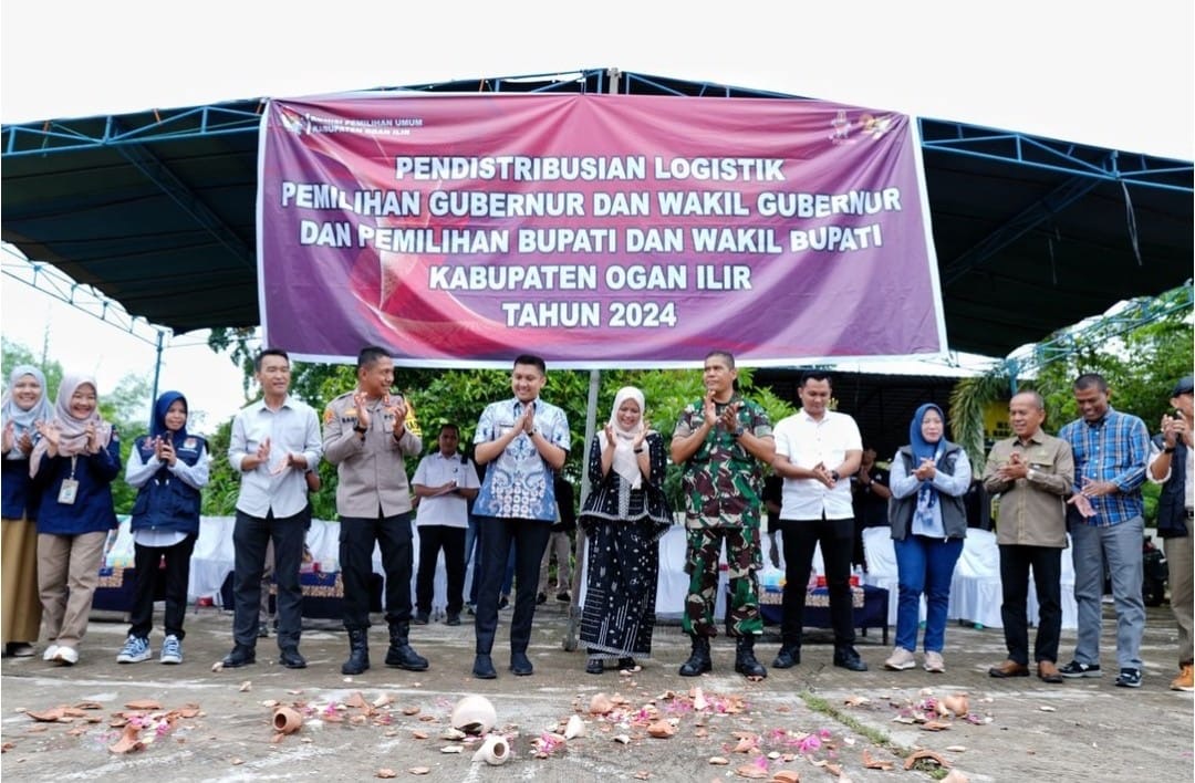 Agenda pertama melepas logistik Pilkada 2024 bersama unsur Forkopimda yang ada di Ogan Ilir, Minggu 24/11/2024.