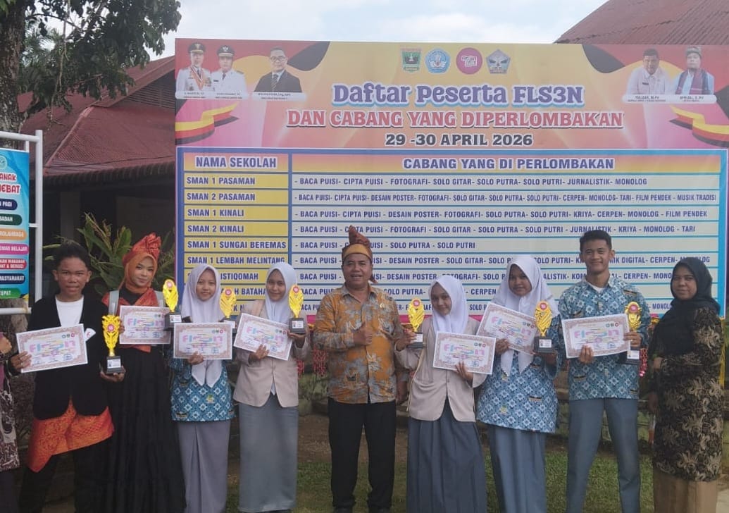 “Kepada peserta didik yang telah berhasil menjadi pemenang FLS3N di tingkat Pasaman Barat diucapkan selamat, ananda telah mengharumkan nama sekolah masing – masing. Kita doakan dan dukung sepenuhnya agar siswa dan siswi yang menjadi juara tingkat kabupaten,” ungkapnya.