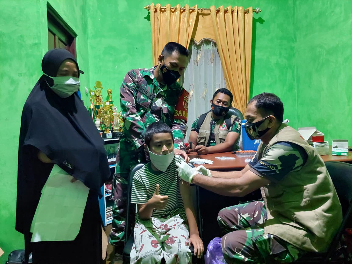 Usai melaksanakan serbuan vaksinasi di desa Sungai Buluh menjelang buka puasa sore, kini Tim Mobile Kodim 1002/HST melanjutkan serbuan vaksin di desa Pamangkih Seberang Kecamatan Labuan Amas Utara (HST) Kabupaten Hulu Sungai Tengah (HST) Kalimantan Selatan.Senin (18/4) malam