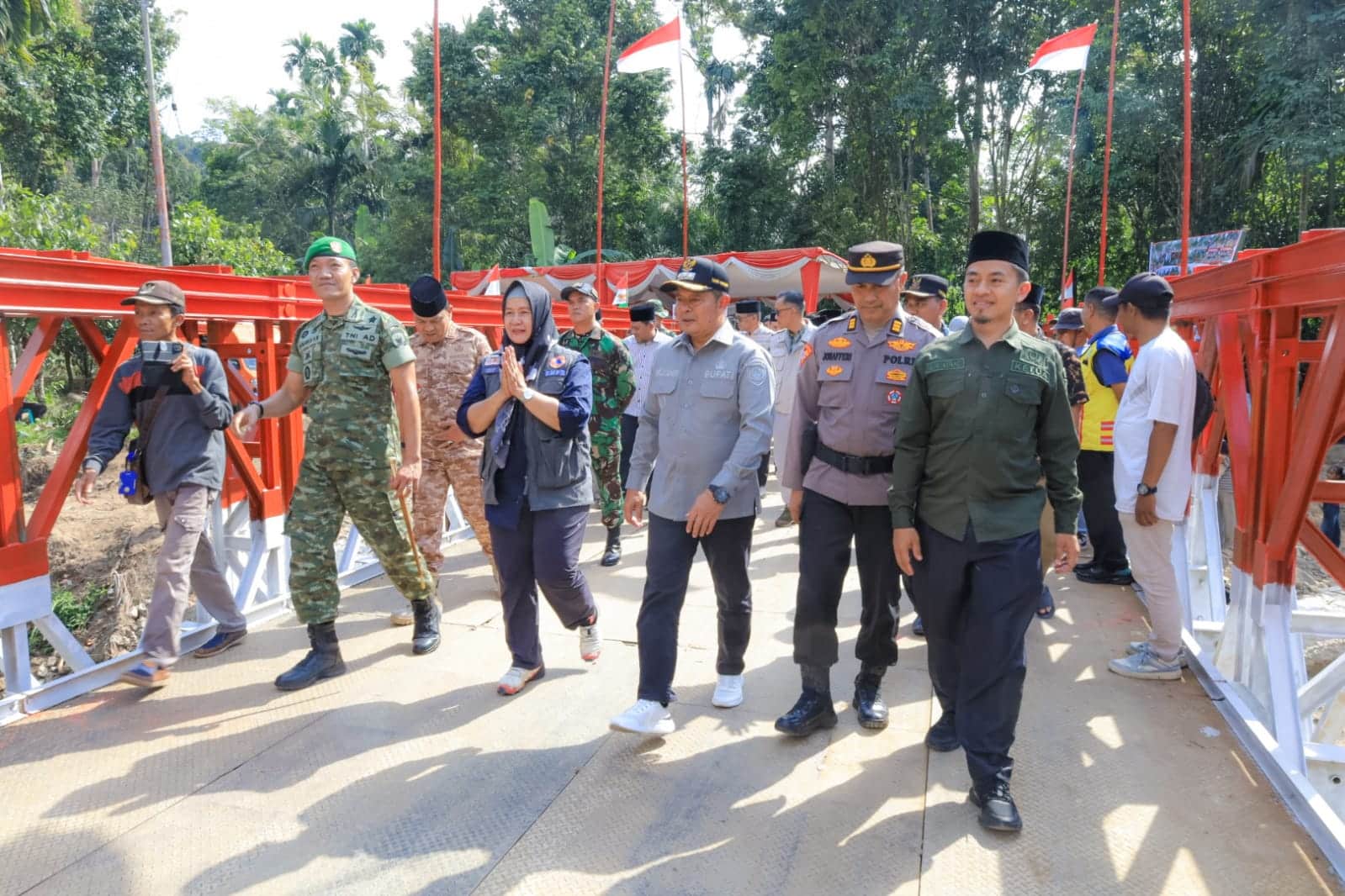 Dikatakan Bupati Welly, kecepatan respons dan kekuatan kolaborasi menjadi kunci utama. Terbangunnya jembatan ini merupakan bukti nyata sinergi lintas sektor antara pemerintah pusat, pemerintah provinsi, pemerintah kabupaten, TNI, dunia usaha, serta dukungan masyarakat, sebagai wujud hadirnya negara di tengah masyarakat. Jelasnya.