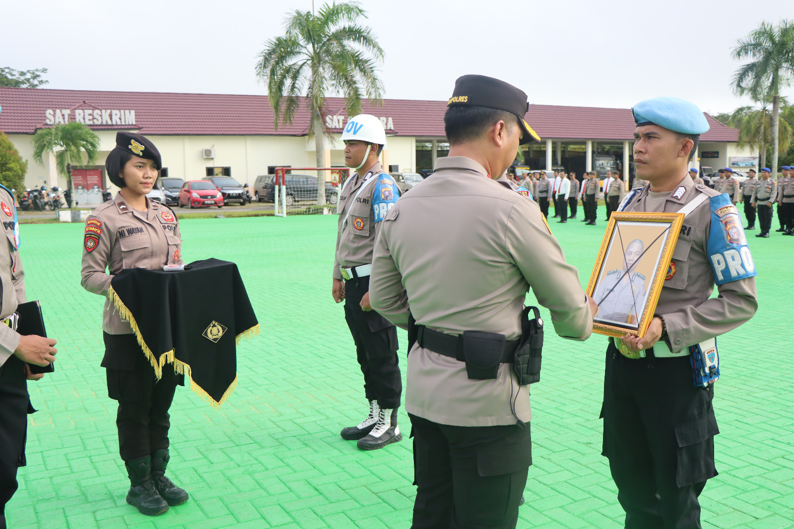 Dihadapan seluruh personil Polres Pulang pisau dan para Kapolsek jajaran, Kapolres Pulang Pisau, AKBP. Kurniawan Hartono, S.I.K yang bertindak selalu inspektur upacara