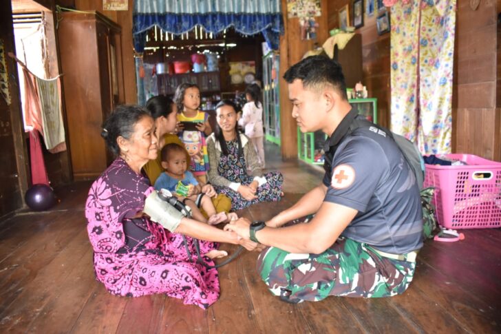 Barabai,Metrotalenta.online–Tim Kesehatan Satgas TMMD 116 Kodim 1002/HST Berikan Layanan Dari Pintu Ke Pintu,Anggota Kesehatan Satgas TNI Manunggal Membangun Desa (TMMD) ke-116 Kodim 1002/HST memberikan pelayanan kesehatan dari pintu ke pintu rumah warga Hapulang.