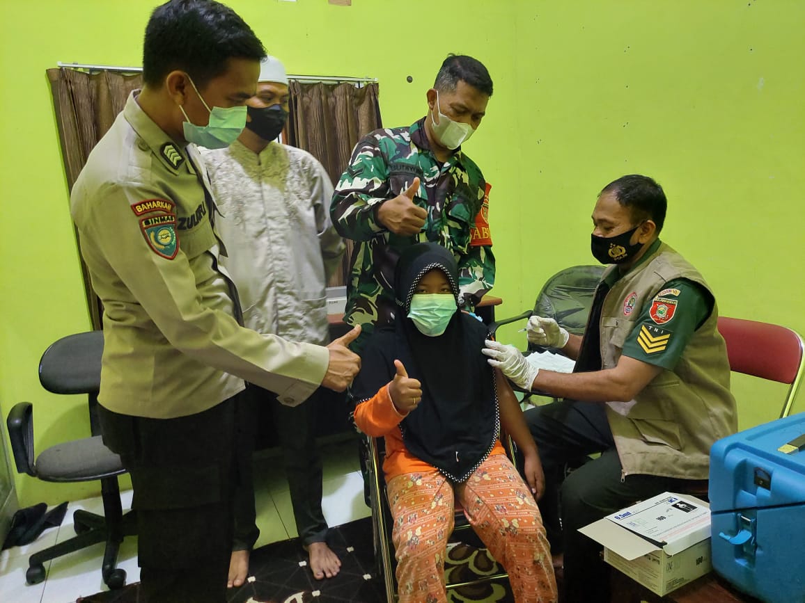 Di desa Banua Budi Tim Mobile Kodim 1002/HST melaksanakan vaksinasi di Kantor desa dengan koordinator vaksin Danramil 1002-06/Barabai Kapten Inf Rudi Hartono.