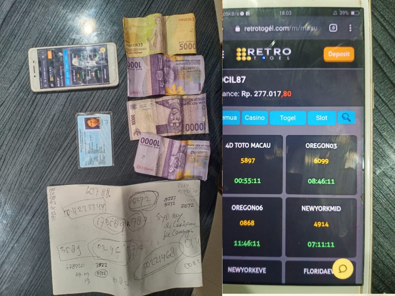 Pelaku inisial C ditangkap ketika sedang duduk sambil merekap nomor Togel yang akan dikirim ke situs judi online RetroTogel.com atas nama Bocil87 melalui Handphone miliknya bersama saudara Pgl Oki di warung ketoprak dekat Bank BRI Sawahlunto yang bertempat di Pasar Remaja Kelurahan Pasar Kecamatan Lembah Segar Kota Sawahlunto.