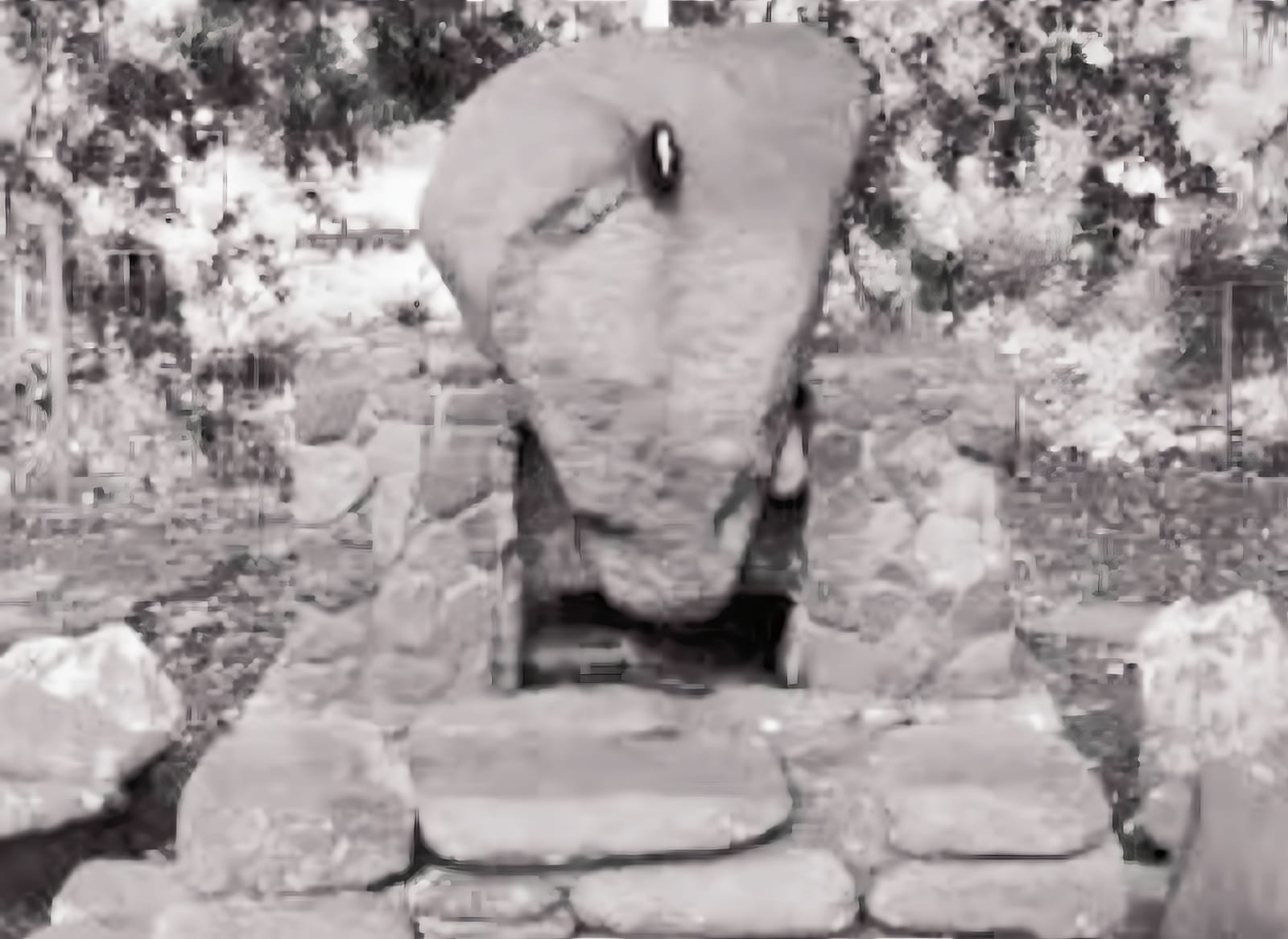 (sampai sekarang masih ada batu yang bekas ditikam ninik Perpatih Sebatang itu dalam sawah di belakang Koerimbang Batoe Alang di Soengai Tarab, dalam negeri Lima Kaum XII Kota; berlobang-lobang dan berhiro-hiro bekas pamor keris ninik Perpatih Sebatang itu)
