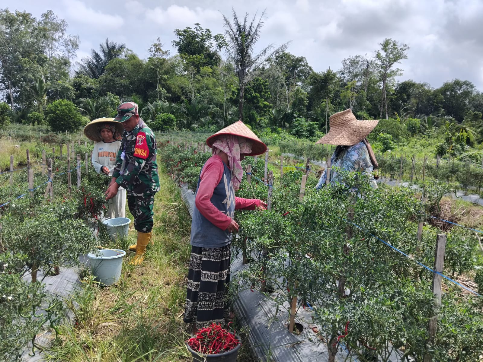 BerandaTNI-POLRITingkatkan Ketahanan Pangan, Babinsa Tabu Darat Bantu Petani Panen Cabe Merah