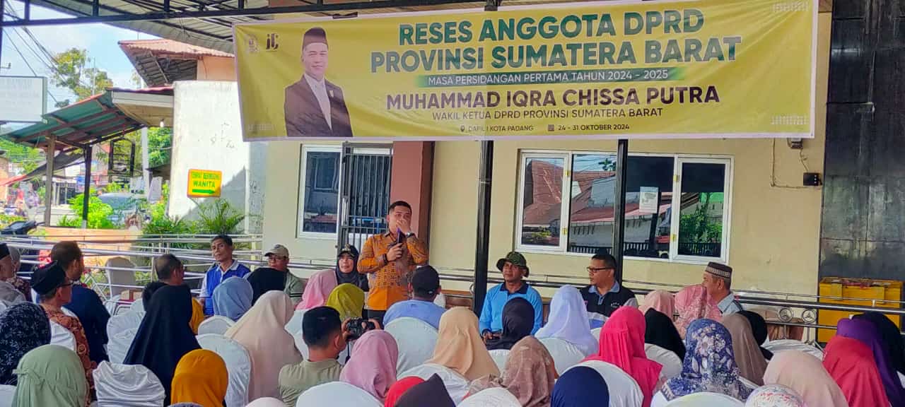 Padang,metrotalenta.online—-Wakil Ketua DPRD Provinsi Sumatera Barat, M. Iqra Chissa Putra, S.St, MM, menggelar kegiatan reses masa persidangan pertama tadi tahun 2024-2025 Dapil Sumbar I Kota Padang di halaman mesjid Nurul Huda Kelurahan Cupak Tangah, Kecamatan Pauh (27/10/2024).