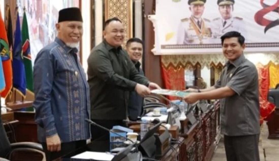 Nanda Satria didampingi oleh Wakil ketua Iqra Chissa dan Sekretaris Dewan Maifrizon ,hadir juga Gubernur Sumbar Mahyeldi Ansharullah bersama SKPD , unsur forkopimda dan undangan lainnya