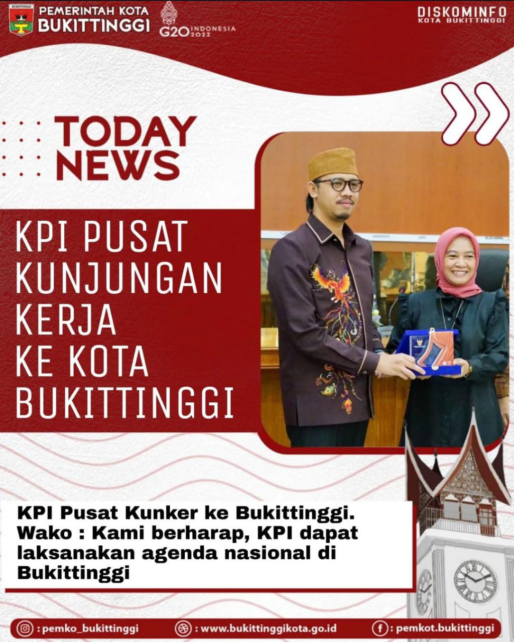 Walikota Bukittinggi, H.Erman Safar, mengapresiasi KPl Pusat yang memilih Bukittinggi sebagai salah satu lokasi untuk