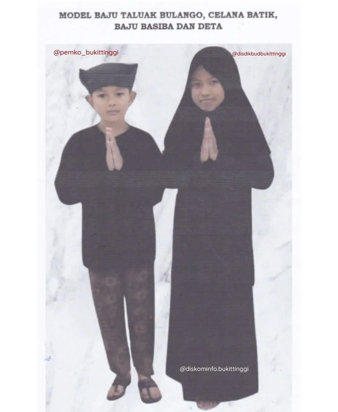 Walikota Bukittinggi menginstruksikan kepada Siswa Sekolah Dasar (SD) dan Sekolah Menengah Pertama (SMP) pada Hari Rabu dan Kamis untuk menggunakan pakaian daerah dengan deta (penutup kepala) bagi siswa laki -laki dan pakaian baju kurung untuk perempuan, serta memakai seragam batik pada hari Jumat.