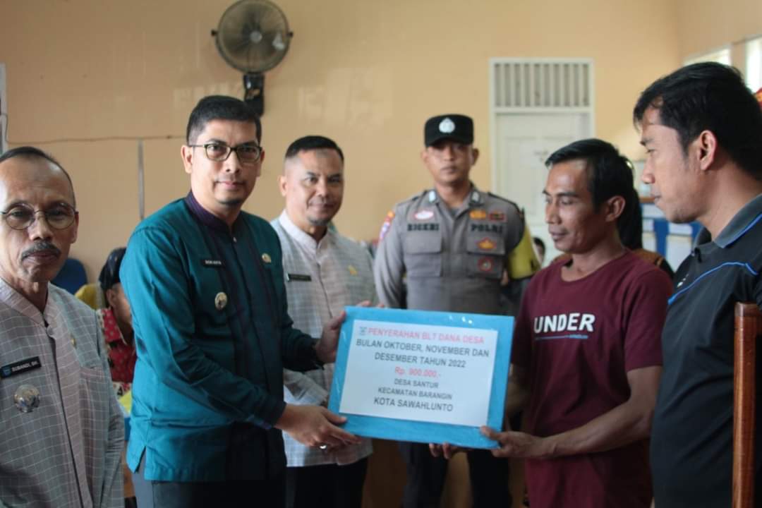Sawahlunto,Metrotalenta.online–Pemerintah Desa Santur Kecamatan Barangin melaksanakan penyaluran Bantuan Langsung Tunai (BLT) dari Anggaran Dana Desa (ADD), di kantor desa itu, pada Jum’at 02 Desember 2022, yang dihadiri langsung Wali Kota Sawahlunto Deri Asta.