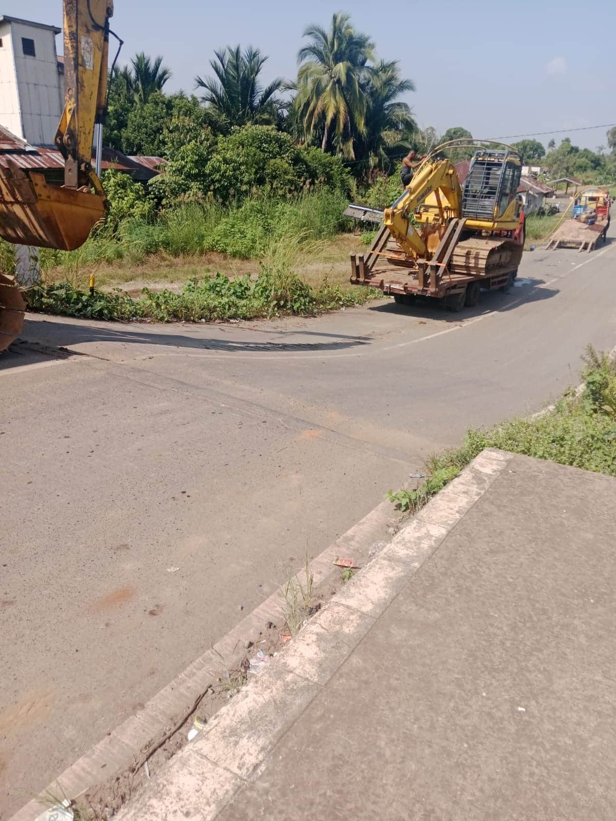 Warga setempat yang bernama Diyo video langsung direkam terlihat dengan jelas beberapa unit excavator berjalan beriringan di atas aspal. Akibatnya, permukaan jalan yang dilalui tampak mengelupas dan rusak.